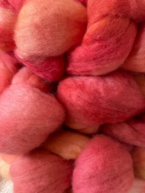 This 4 oz hand-painted roving was produced from luscious 23 micron Falklands wool. It drafts beautifully for hand-spinning and is not superwash, so will work perfectly in any felting project.